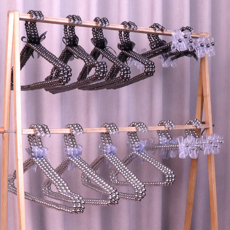 Electroplated Elegant Glam Large Bead Pearl Wedding Dress Tops Hangers with Matching Bow