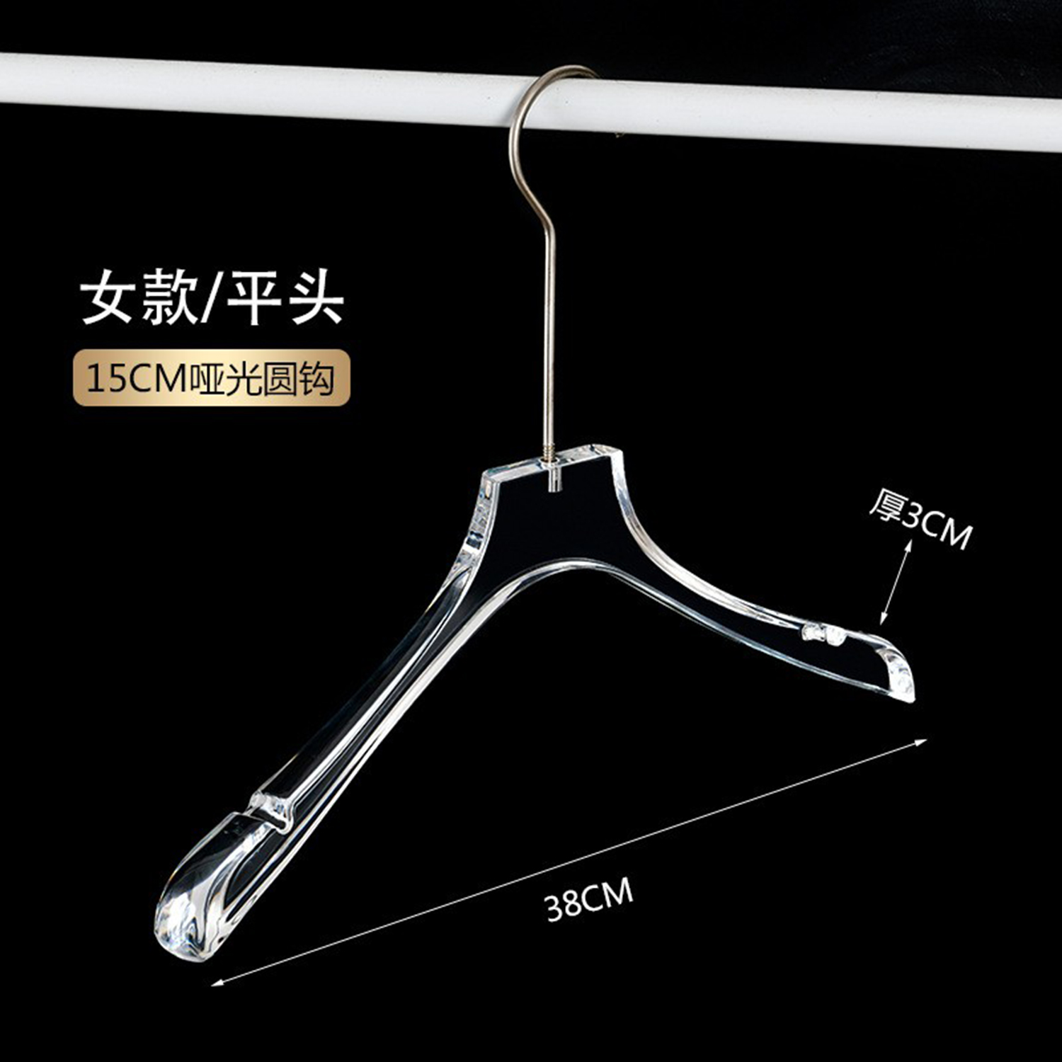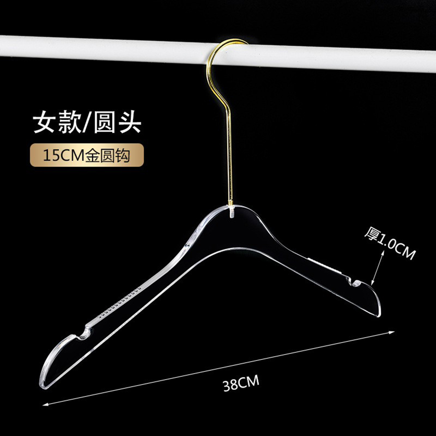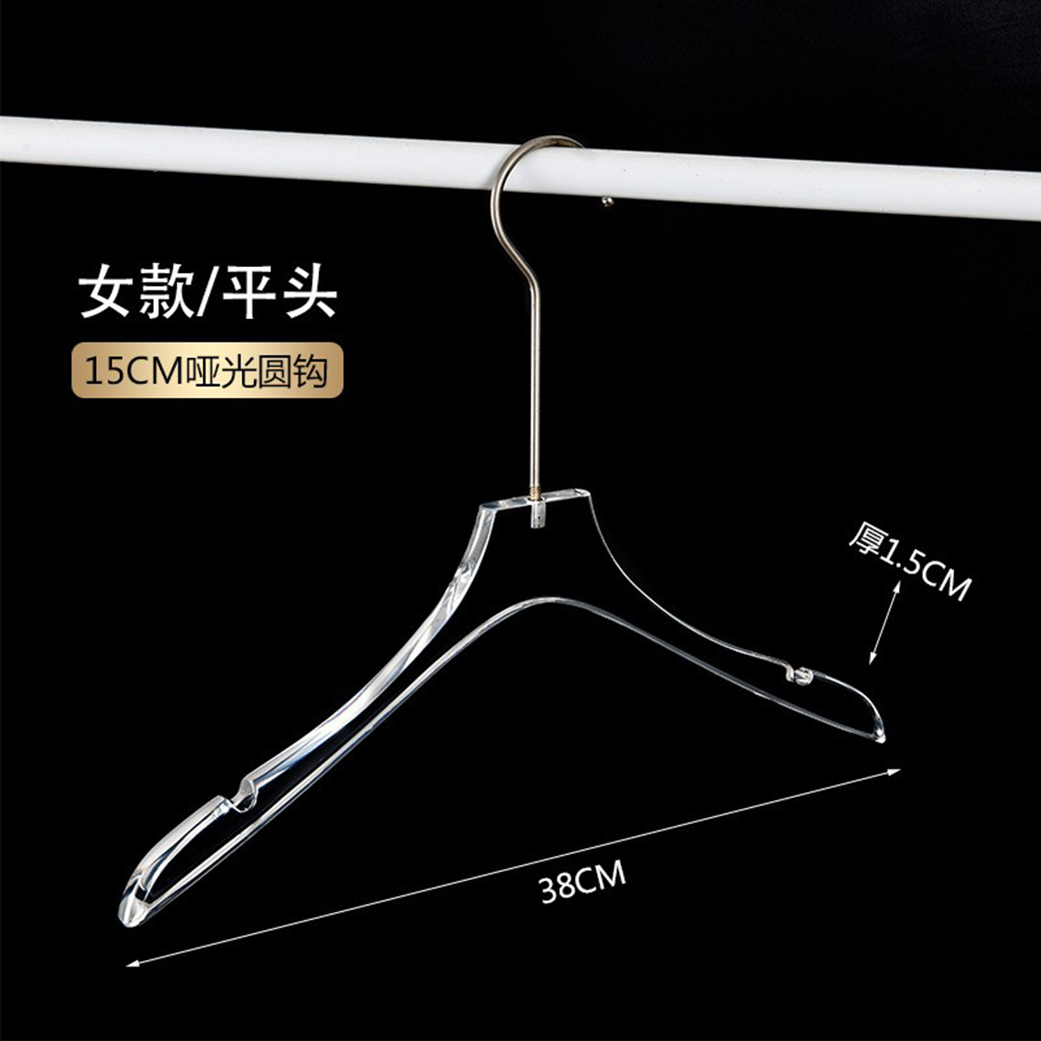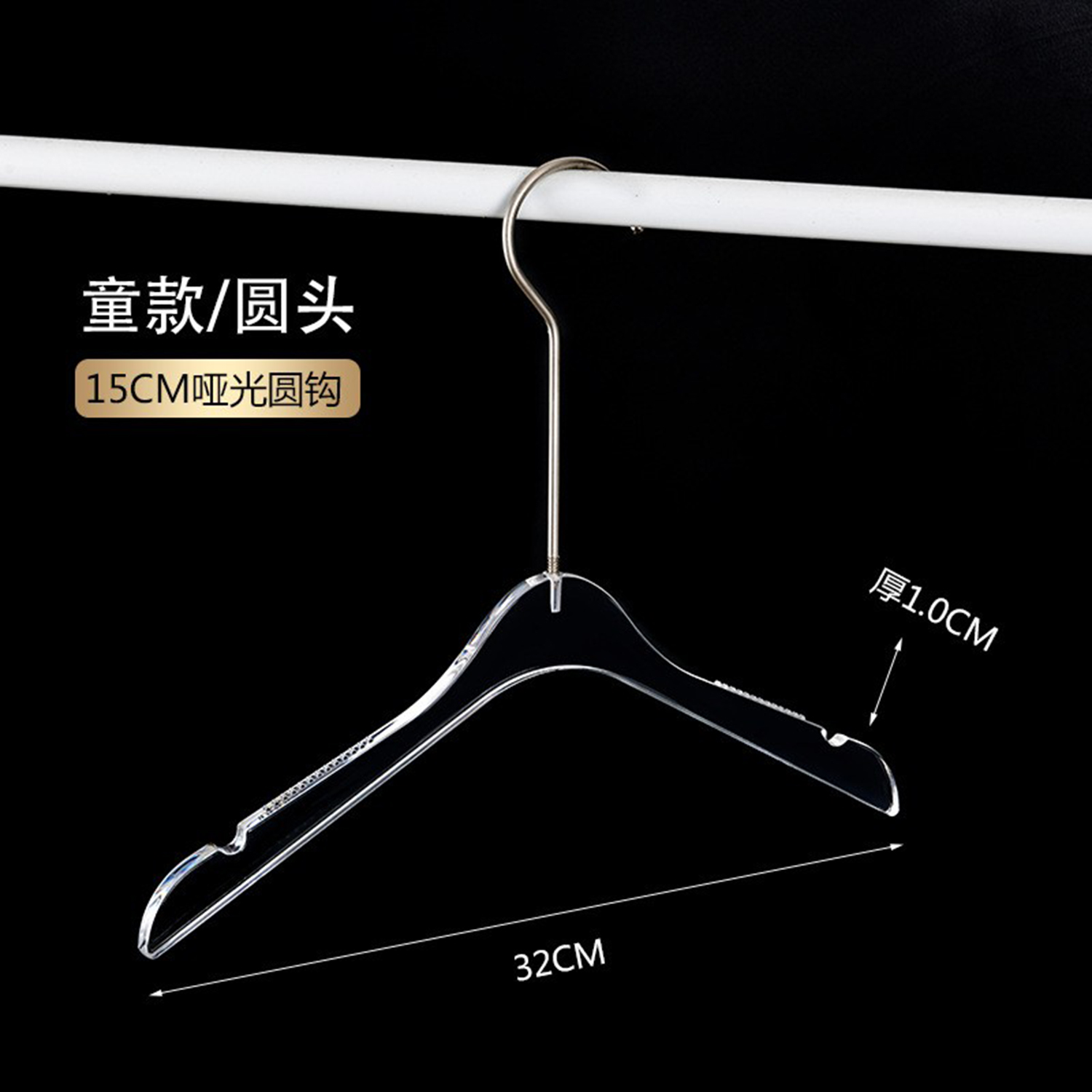 定制Logo个性化镀铬金色挂钩透明亚克力衣架,带Logo的透明亚克力衣架