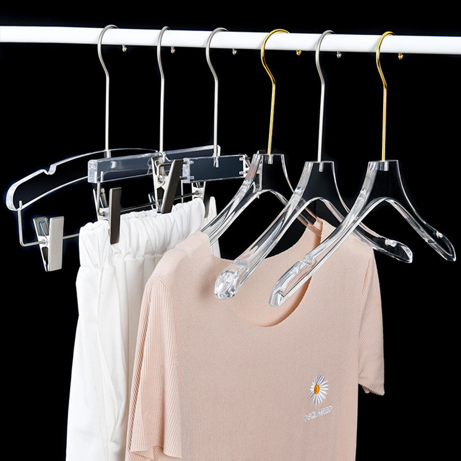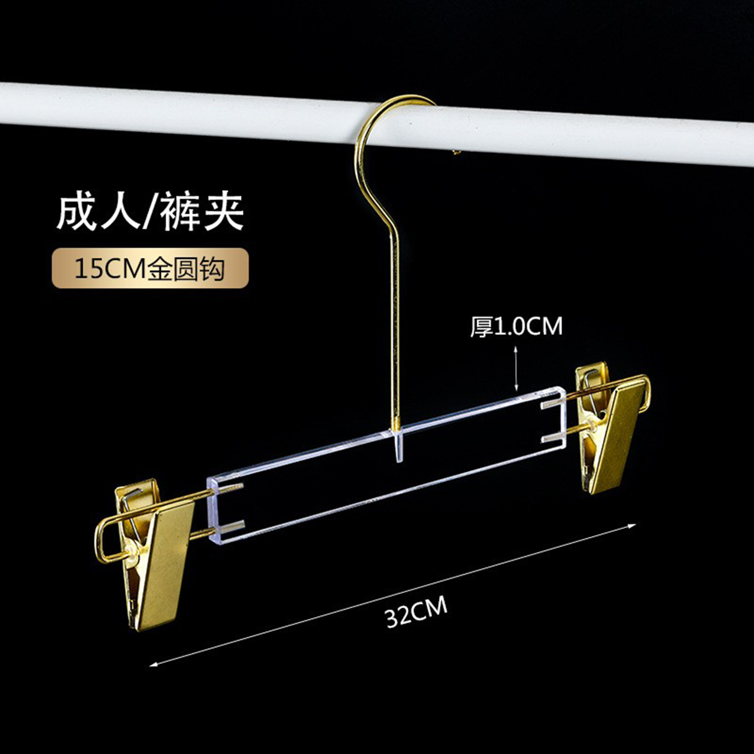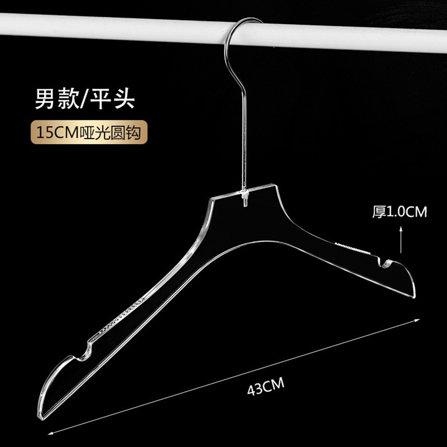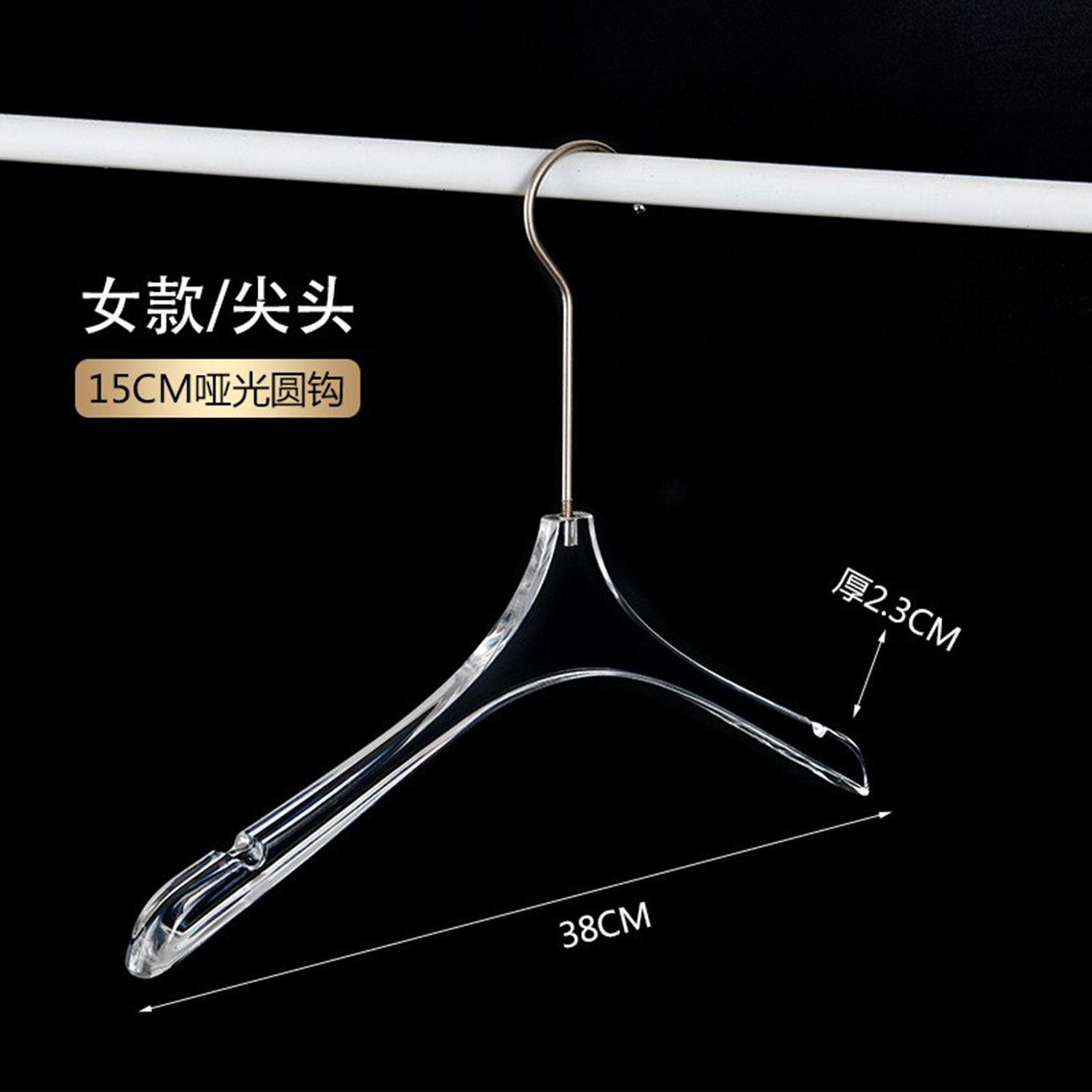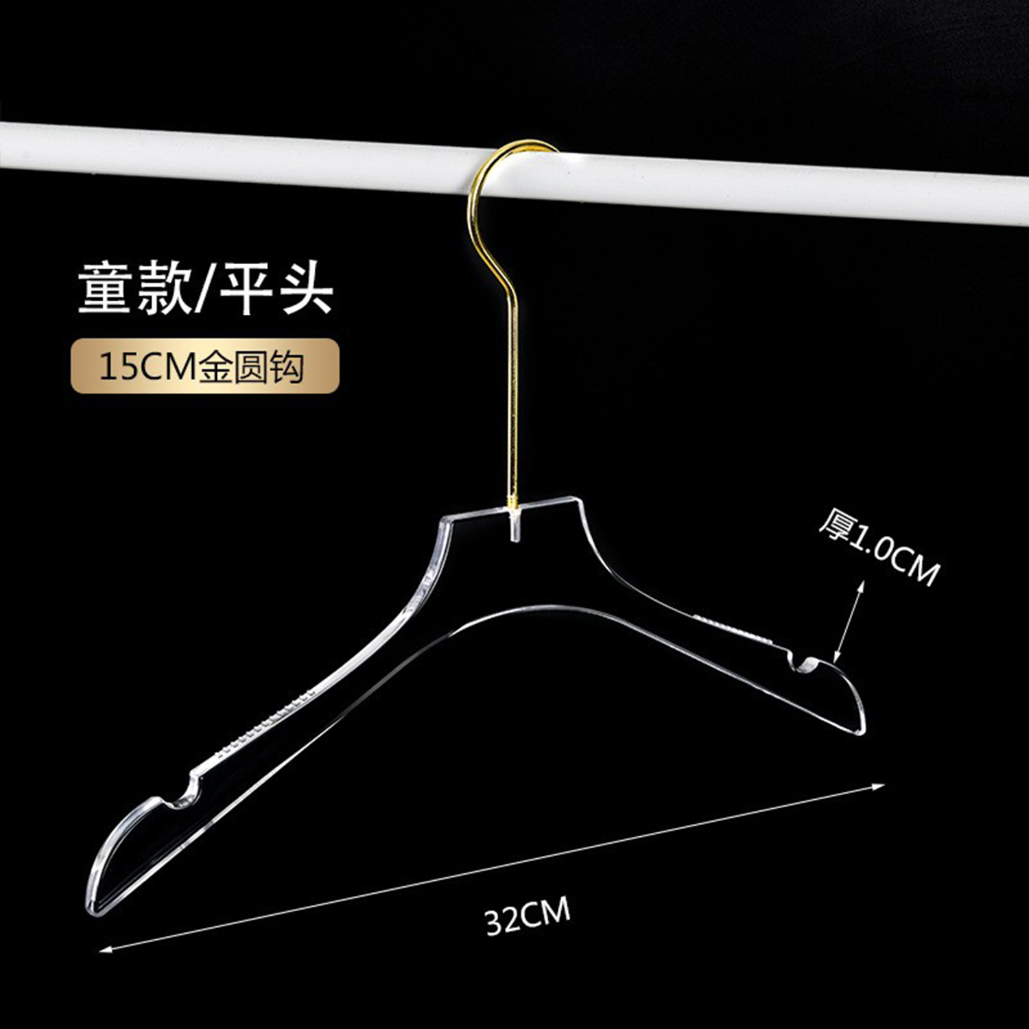 定制Logo个性化镀铬金色挂钩透明亚克力衣架,带Logo的透明亚克力衣架