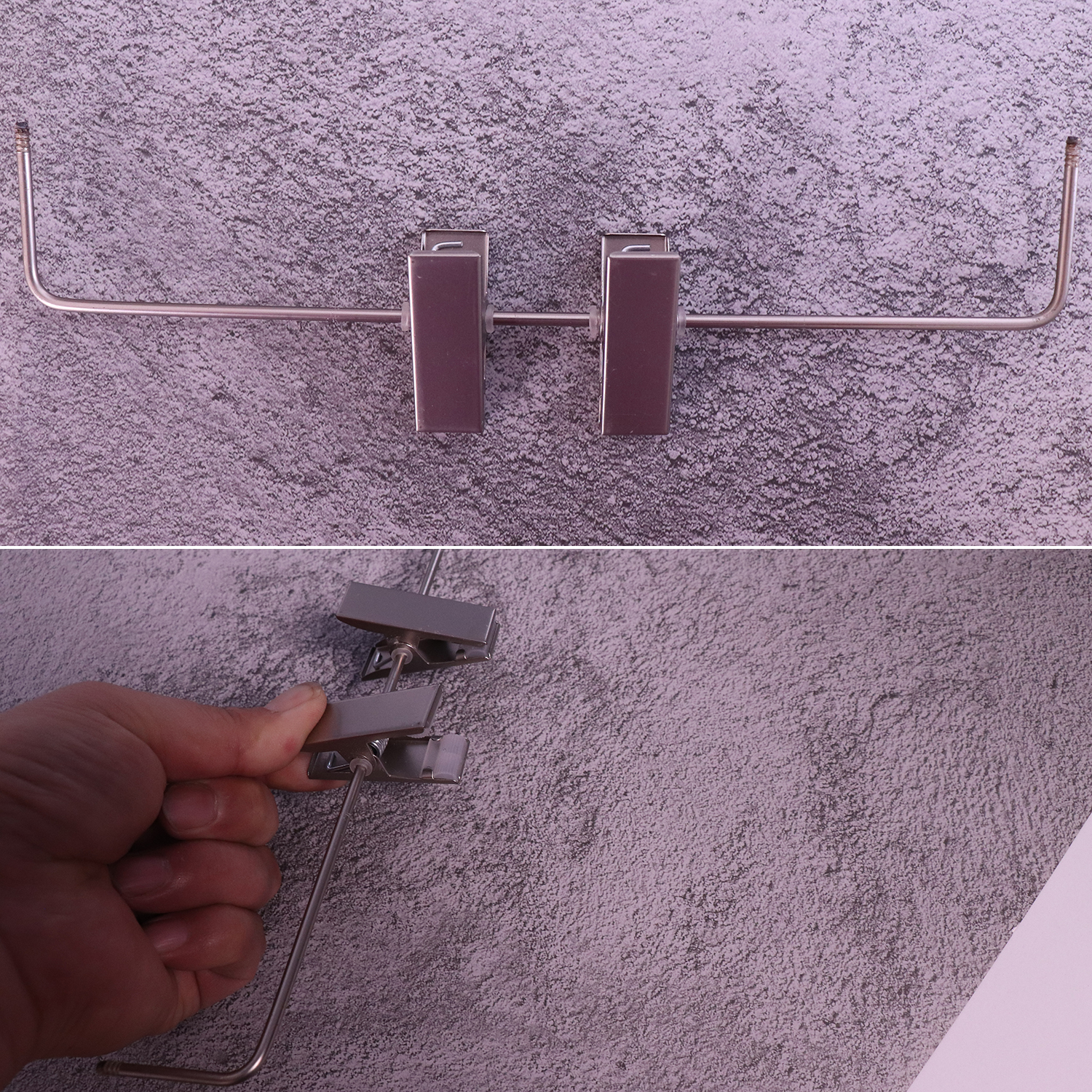 透明PVC孔眼有助于将夹子牢固地安装在35厘米长的金属U形杆上,并提供足够的抗冲击性。